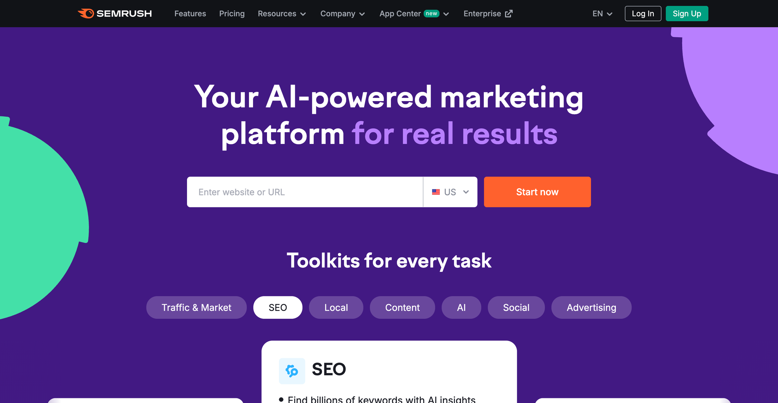 If you want your guest post to rank well in Google, use Semrush's SEO Content Template tool. Enter up to three keywords you want to rank for, choose your country and device, then click "Create content template."