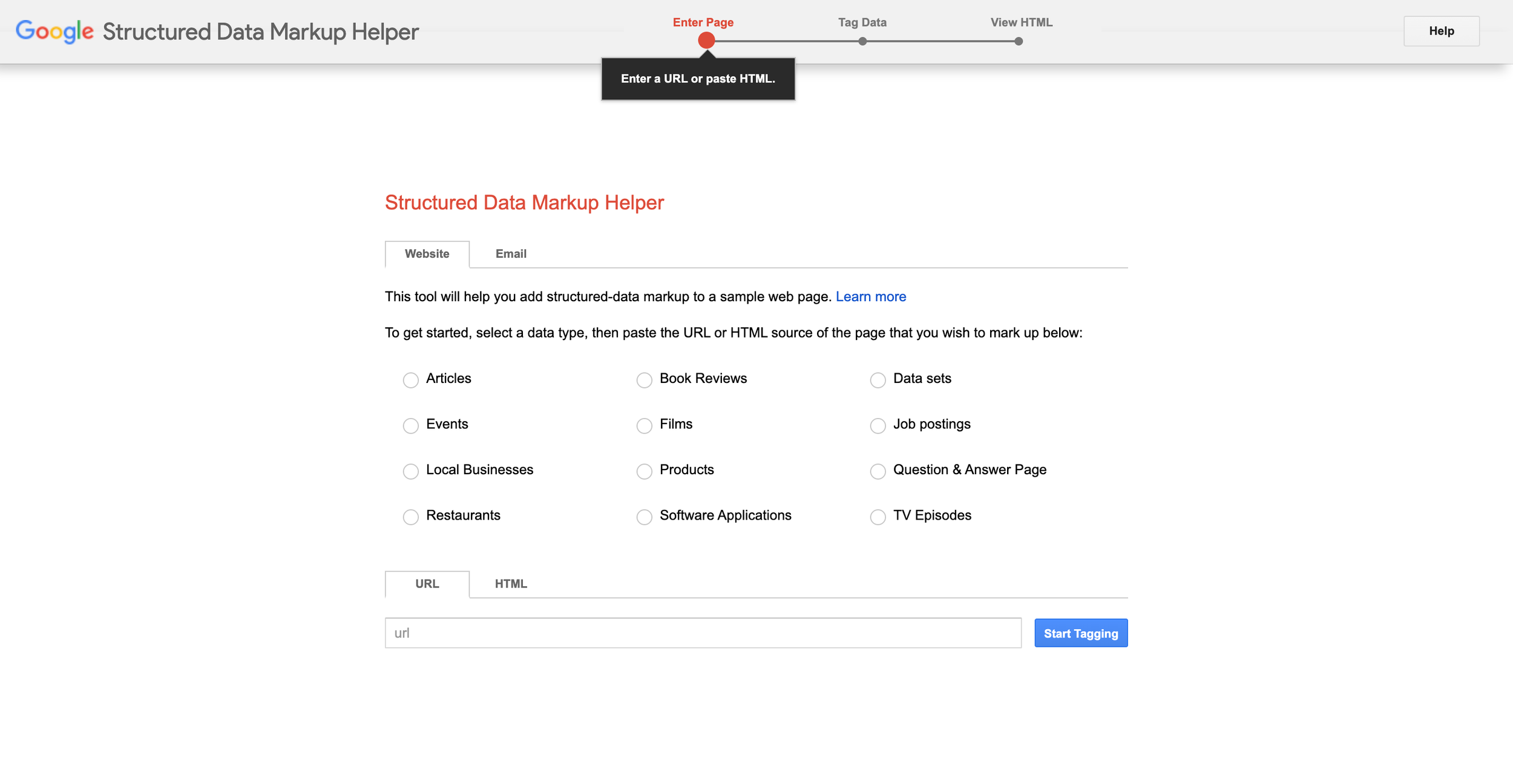 Use Google's Structured Data Markup Helper to create schema for: