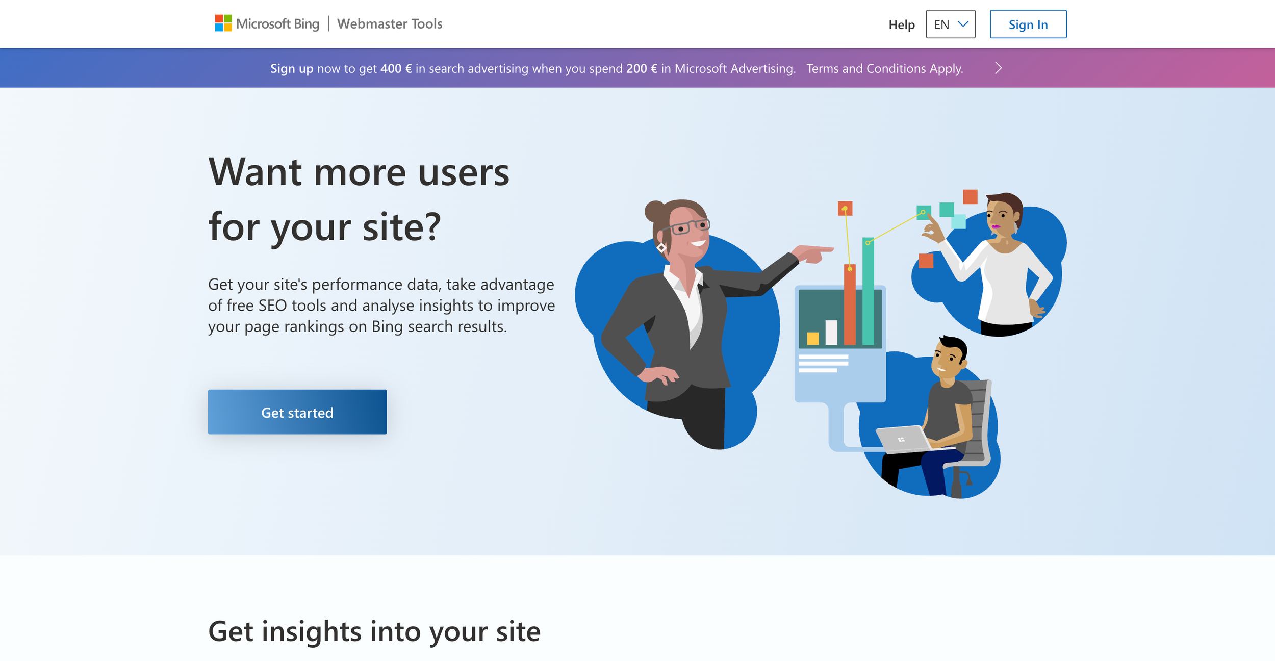 A lot of your potential customers are using Bing, so it's important for Bing to display your pages, too. Set up Bing Webmaster Tools following the same process.
